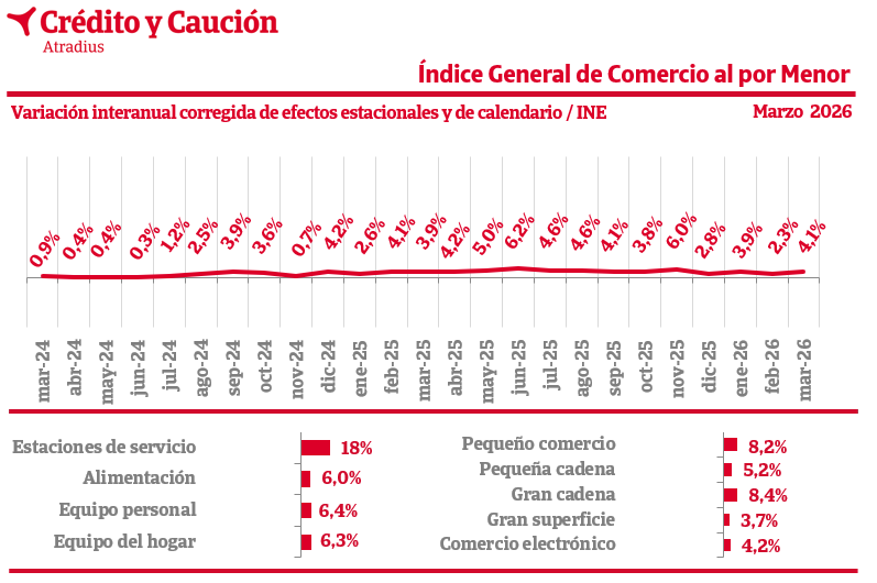 Según los datos del INE, el comercio minorista creció un 4,1% en marzo respecto al mismo mes de 2025.