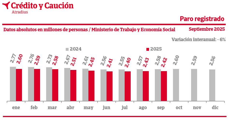 4 de noviembre de 2025, paro registrado del mes de octubre de 2025, (Ministerio de Trabajo y Economía Social).