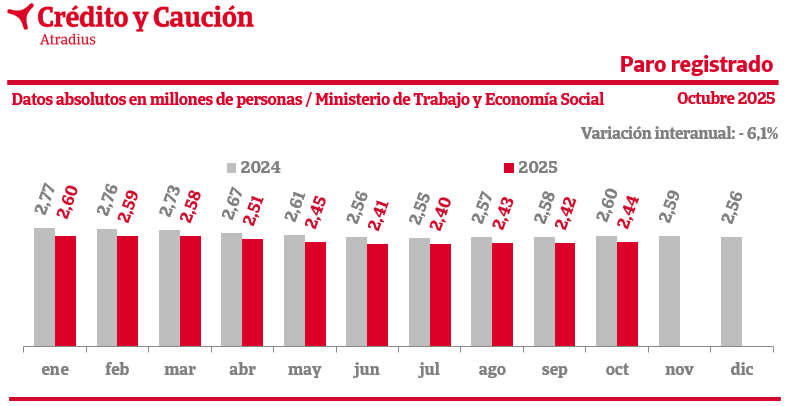 2 de diciembre de 2025, paro registrado del mes de noviembre de 2025, (Ministerio de Trabajo y Economía Social).