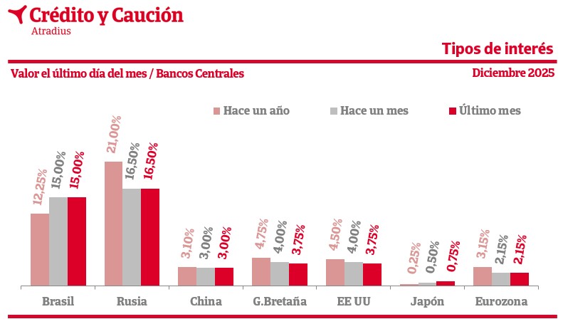 Los principales bancos centrales del mundo mantuvieron los tipos de interés de referencia en diciembre, excepto Gran Bretaña y Estados Unidos, que bajaron. Por el cotrario, suben en Japón.