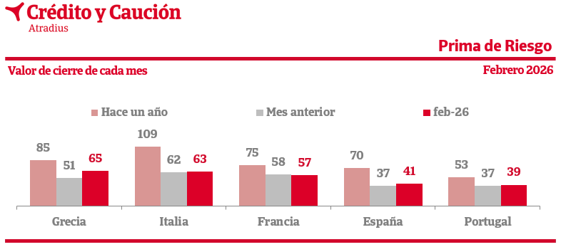 La prima de riesgo puede ser facilmente calculada a partir de la observación del mercado secundario de deuda. La prima de riesgo toma como referencia los bonos a 10 años emitidos por Alemania, la economía percibida como la más segura de la zona euro, y mide el sobreprecio que alcanzan los bonos a 10 años de los otros países en los mercados secundarios de deuda, donde se intercambian libremente. El gráfico muestra la evolución de la prima de riesgo expresada en puntos porcentuales. Se trata, siempre, del valor al cierre de cada mes.