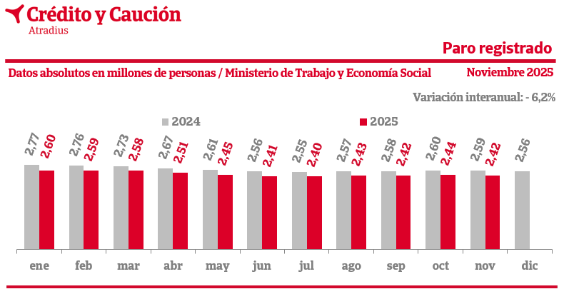 Enero de 2026, paro registrado del mes de diciembre de 2025, (Ministerio de Trabajo y Economía Social).