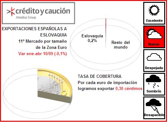 | La economía eslovaca se ha recuperado tras la grave crisis económica del año pasado, con un crecimiento interanual del PIB del 4,6% en el primer trimestre de 2010. Según datos del Instituto de estadística de la República Eslovaca, la producción industrial global aumentó un 13,1% en relación con el primer trimestre de 2009, período en el que registró una caída del 22%. Tras una fuerte caída durante el año pasado, la producción del sector del automóvil aumentó un 49,8% interanual, las manufacturas de maquinaria y equipos un 49,9% y los productos químicos un 35,9%. Las exportaciones de bienes aumentaron un 16,9% en los tres primeros meses de 2010, tras una disminución del 19,9% en 2009 [las importaciones se redujeron un 23,6% en el mismo período]. El indicador de confianza en la economía ha aumentado 24,2 puntos desde su nivel más bajo a mediados de 2009, pero sigue estando un 8% por debajo de su media a largo plazo. El desempleo aumentó hasta el 12,5% en abril de 2010 [10,9% en abril de 2009], frenando la demanda de los consumidores.