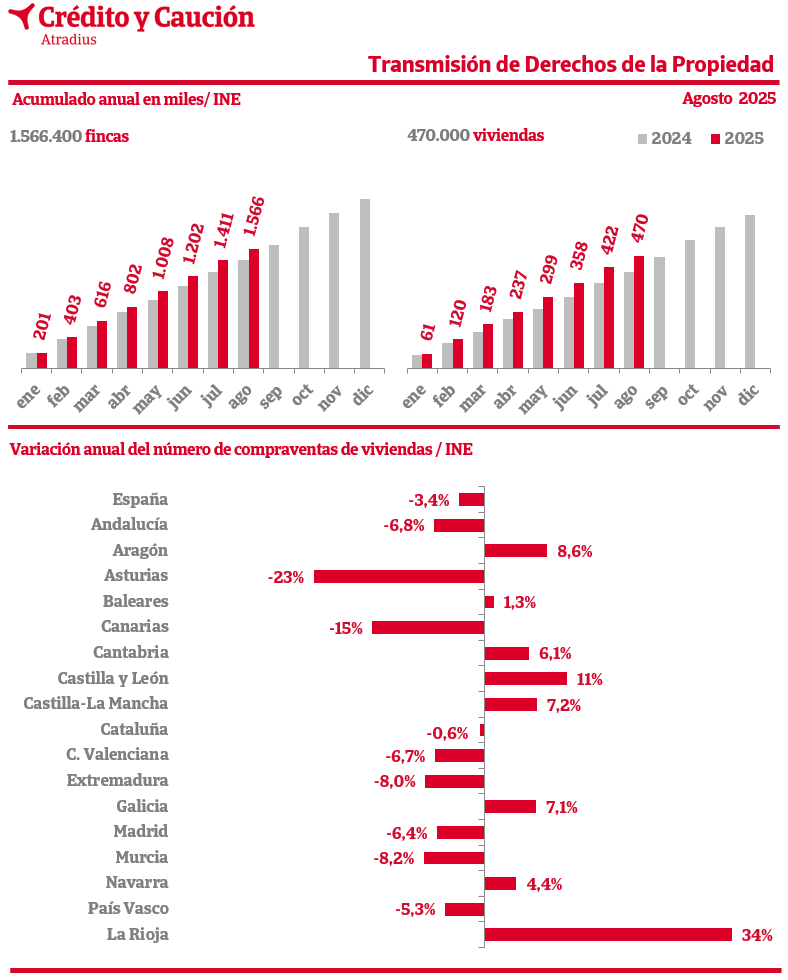 18 de noviembre 2025, datos revisados hasta septiembre de 2025 de la Estadística de Transmisión de Derechos de la Propiedad, (INE).