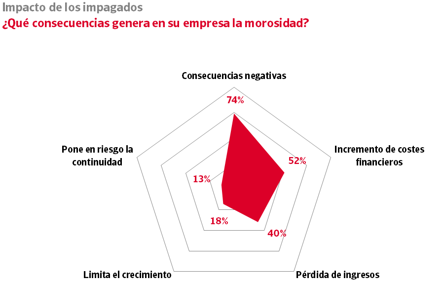 Uno de los datos más relevantes del estudio se refiere a las consecuencias de la morosidad, que afecta a la actividad empresarial de tres de cada cuatro empresas. El más grave se refiere al 13% del tejido empresarial, que está en riesgo de cierre debido al efecto de los incumplimientos de pago.