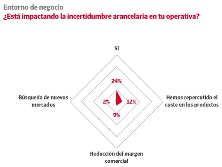 El 24% de las empresas asegura estar sufriendo los efectos de la guerra comercial que está impactando en el coste de sus productos, en el 12% de los casos.