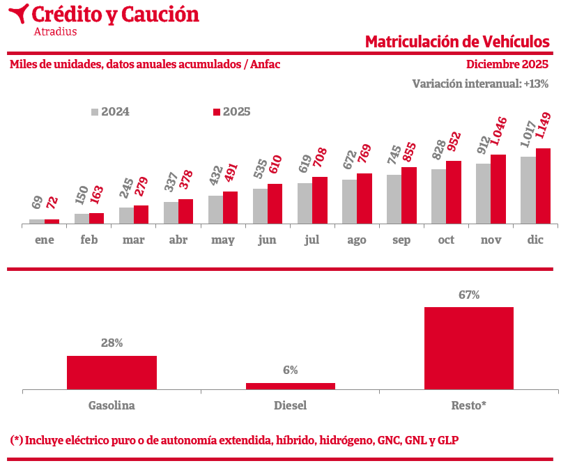 Primera semana de febrero de 2026, Matriculación de Turismos referente al mes de enero de 2026, (Anfac).