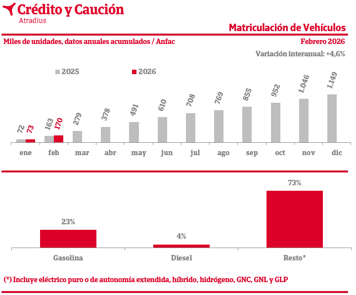 Las matriculaciones crecen un 4,6% interanual