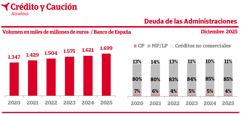 Según los datos del Banco de España, la deuda de las Administraciones Públicas aumentó en 410 millones de euros respecto al mes anterior.