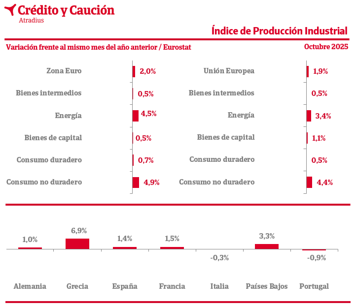 15 de enero 2025, datos del IPI de noviembre 2025, (Eurostat).