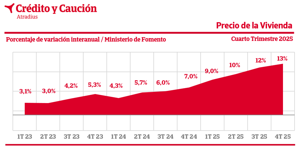 El precio de la vivienda crece un 13%