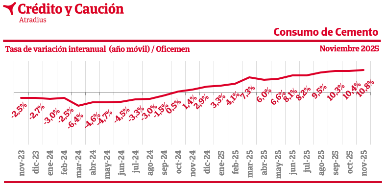 Los datos de evolución de consumo de cemento son difundidos cada mes en los informes estadísticos de avance nacional que publica la Agrupación de Fabricantes de Cemento de España (Oficemen).