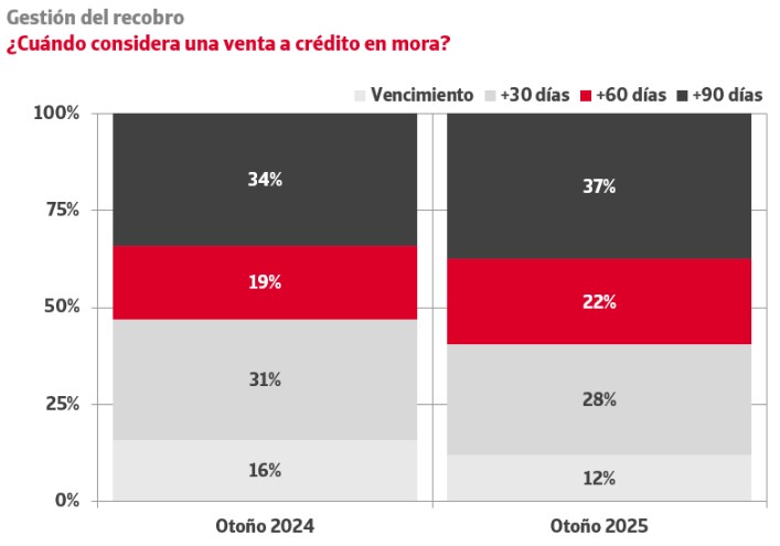 Solo el 12% de las empresas inicia sus acciones de recobro al vencimiento de las facturas.