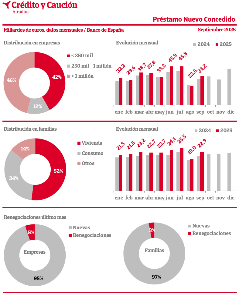 Crece el crédito nuevo a las empresas en septiembre