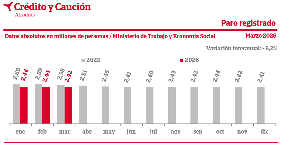 5 de mayo de 2026, paro registrado del mes de abril de 2026, (Ministerio de Trabajo y Economía Social).