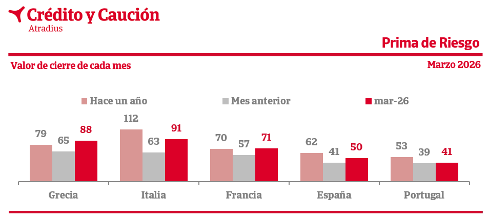 La prima de riesgo puede ser facilmente calculada a partir de la observación del mercado secundario de deuda. La prima de riesgo toma como referencia los bonos a 10 años emitidos por Alemania, la economía percibida como la más segura de la zona euro, y mide el sobreprecio que alcanzan los bonos a 10 años de los otros países en los mercados secundarios de deuda, donde se intercambian libremente. El gráfico muestra la evolución de la prima de riesgo expresada en puntos porcentuales. Se trata, siempre, del valor al cierre de cada mes.