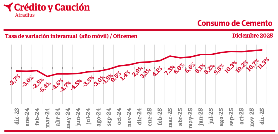 Los datos de evolución de consumo de cemento son difundidos cada mes en los informes estadísticos de avance nacional que publica la Agrupación de Fabricantes de Cemento de España (Oficemen).